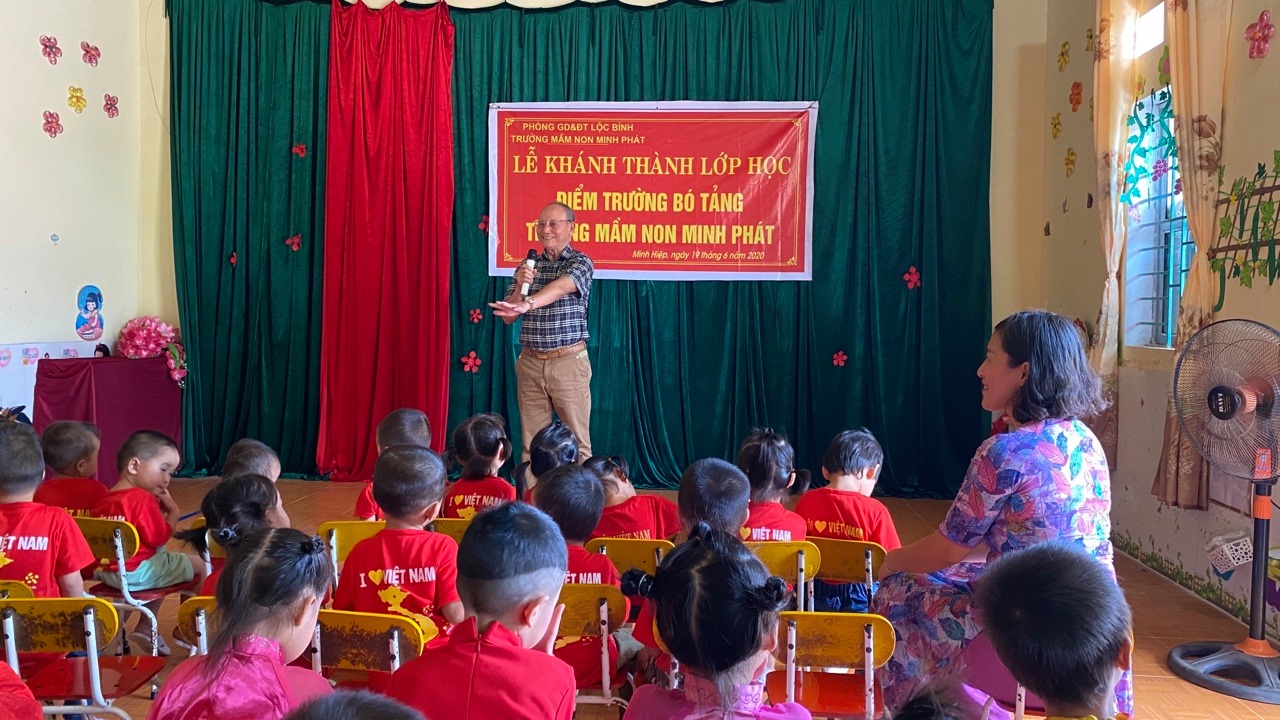 Phát biểu tại buổi Lễ, TTƯT – Bác sĩ Nguyễn Tiến Chỉnh – Chủ tịch HĐQT Sohaco Group bày tỏ sự chia sẻ, đồng cảm với những khó khăn, vất vả của cô và trò điểm trường Bó Tảng, Trường Mầm non Minh Phát xã Minh Hiệp, đồng thời mong rằng sau khi bàn giao công trình, nhà trường cùng học sinh sử dụng công trình sao cho hiệu quả, thiết thực nhất góp phần cùng địa phương khắc phục những khó khăn, tạo điều kiện để các em học sinh học tập, rèn luyện, tu dưỡng trở thành những con ngoan, trò giỏi, người có ích cho xã hội.